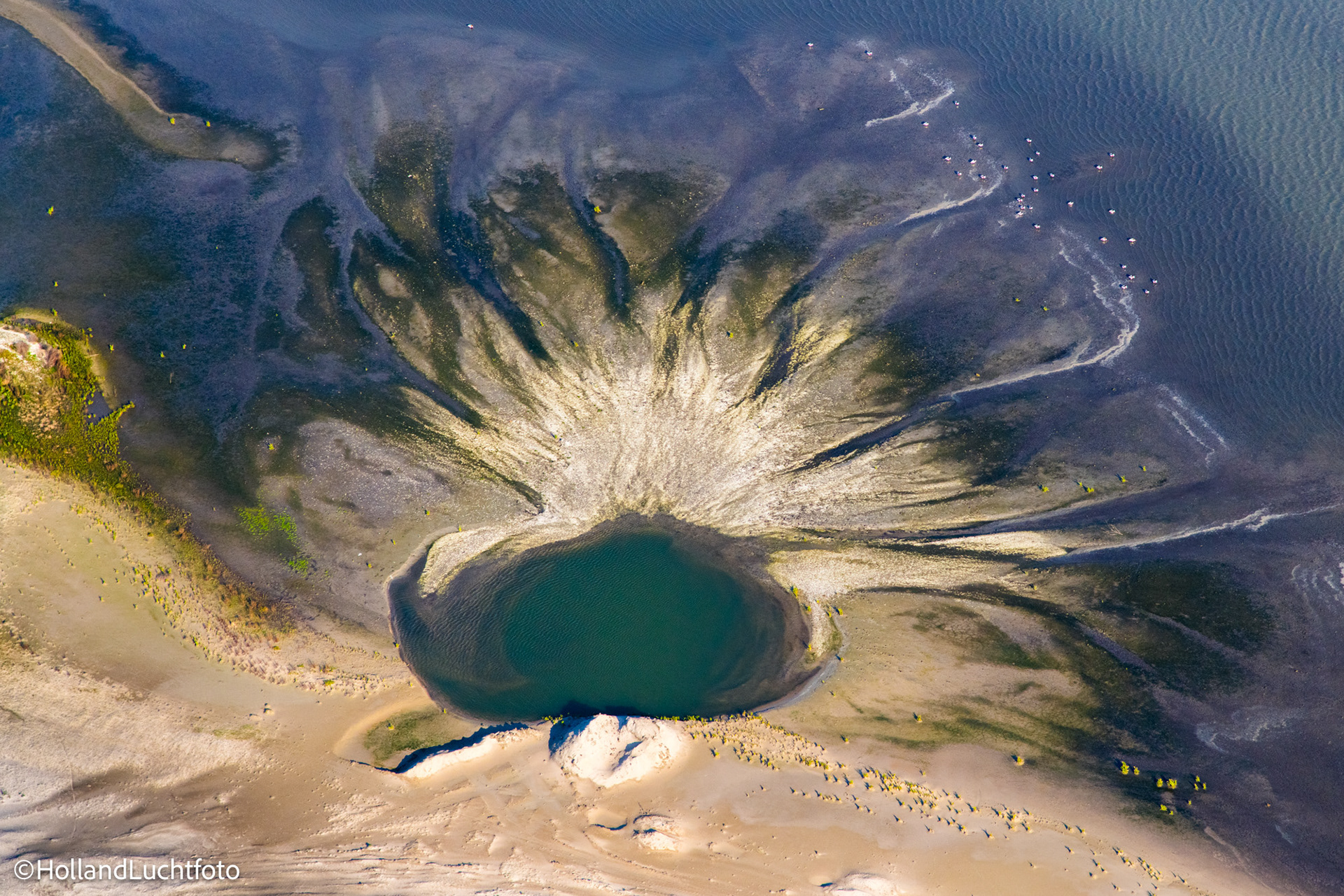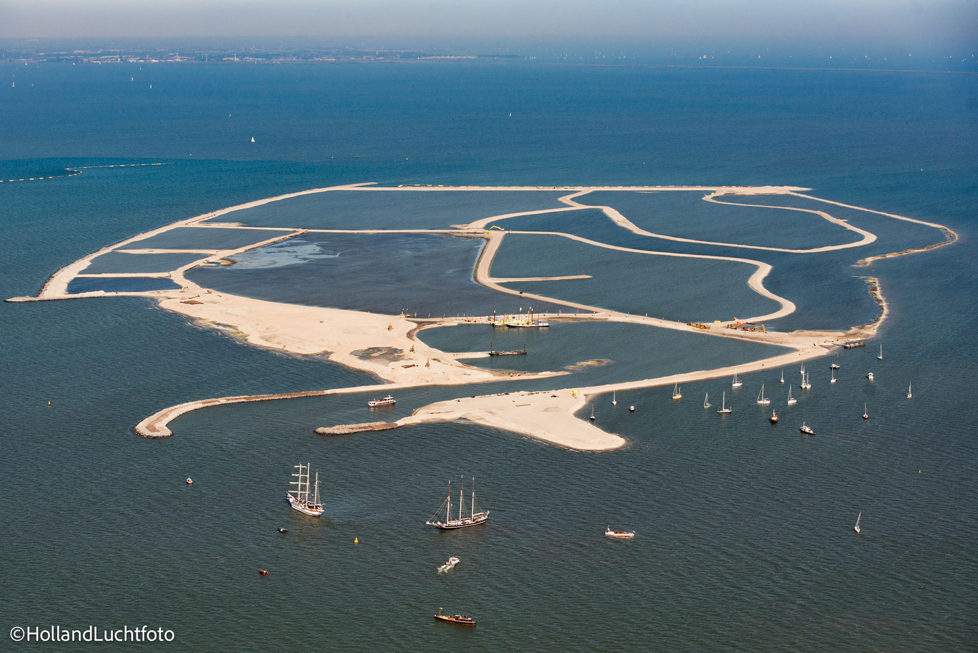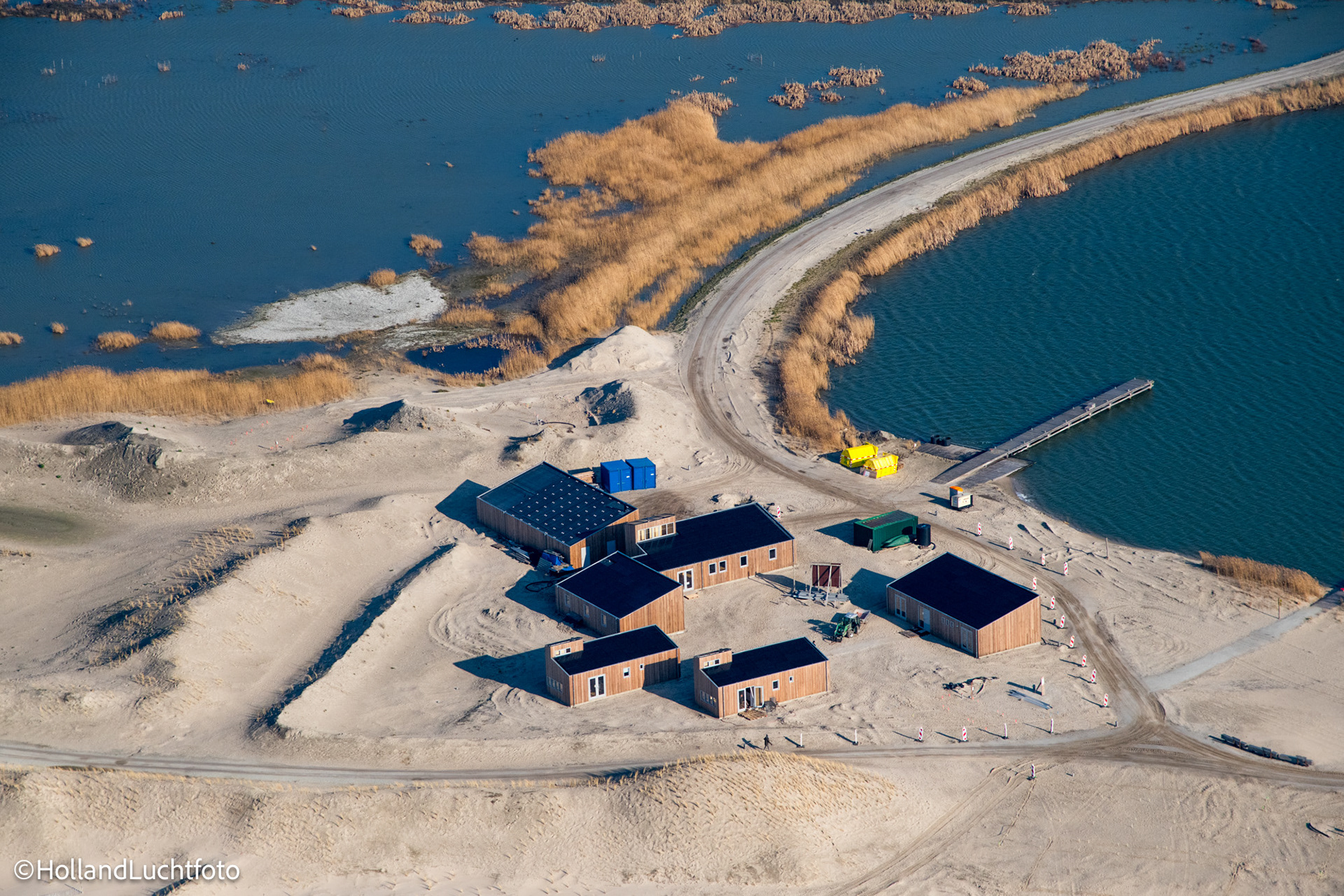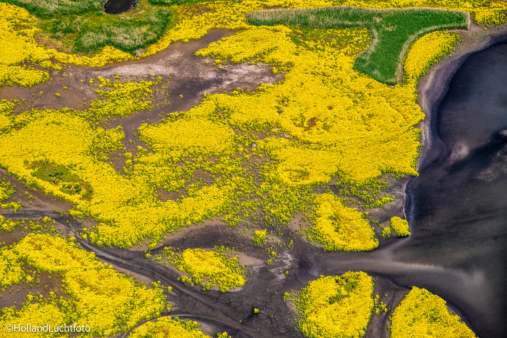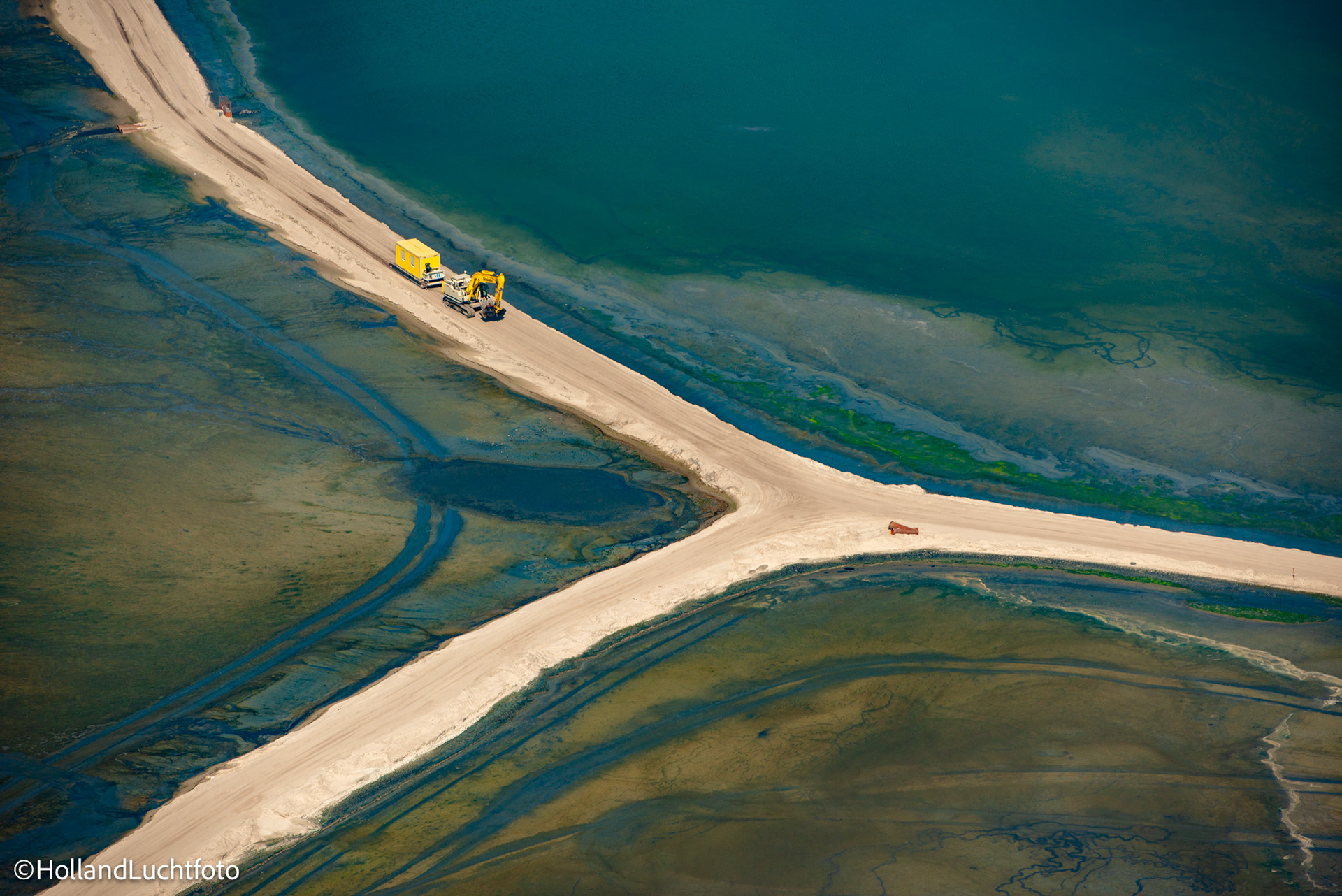 Inmiddels is de archipel uitgegroeid tot een volwaardig ecosysteem. Vanuit de lucht zie je nu: dynamische geulen en kreken, Groen dat terrein wint, met moerasvegetatie die de eilanden hun kleur geeft.