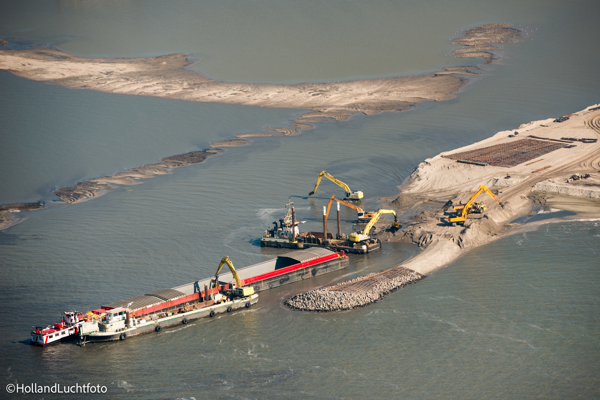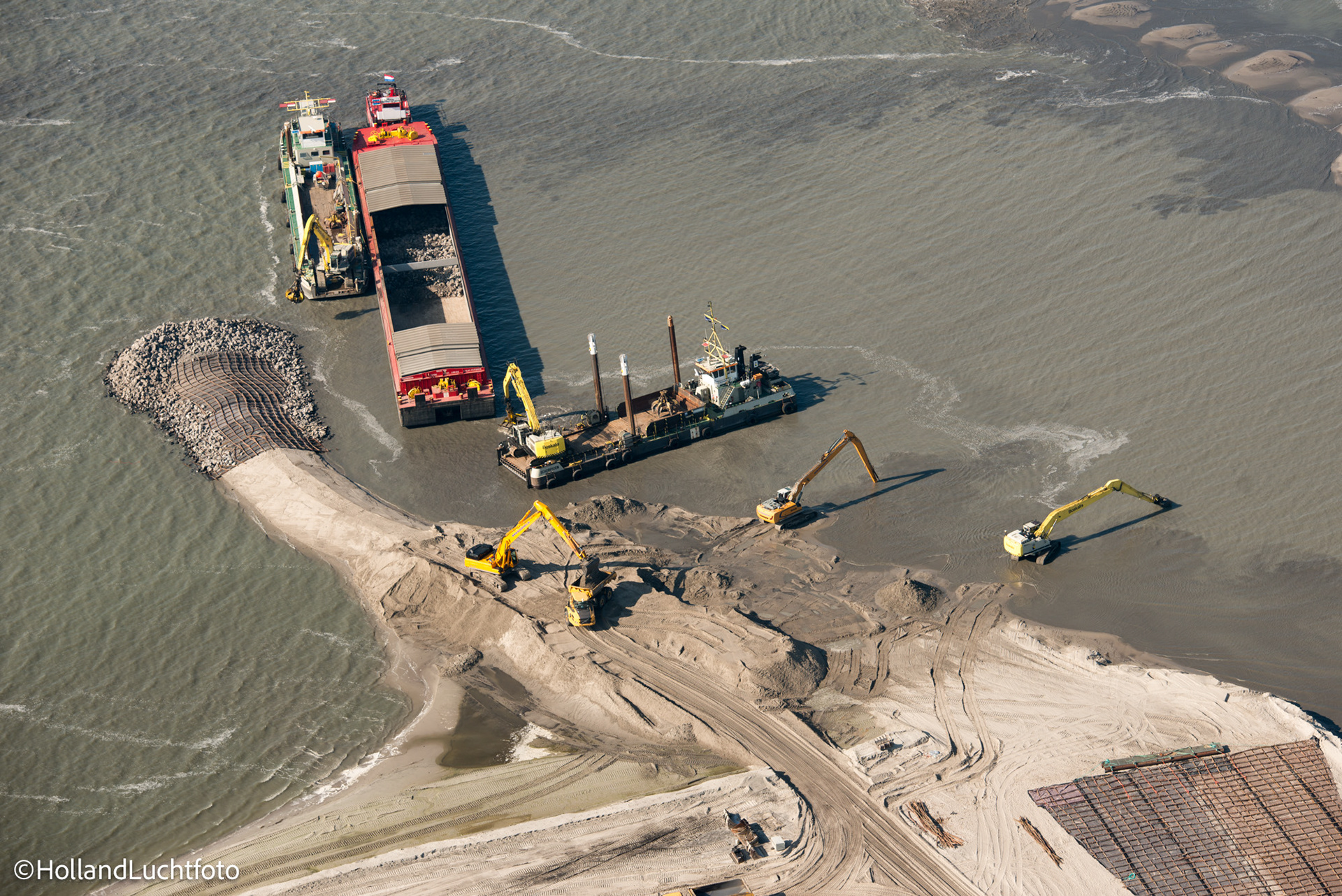De transformatie is vanuit de lucht pas echt goed zichtbaar. Wat begon als een strategisch plan om de waterkwaliteit en biodiversiteit te herstellen, groeide uit tot een technisch hoogstandje. Wij zagen de eerste contouren van zand en slib boven de waterspiegel uitkomen—een kwetsbaar begin in een uitgestrekte plas water.