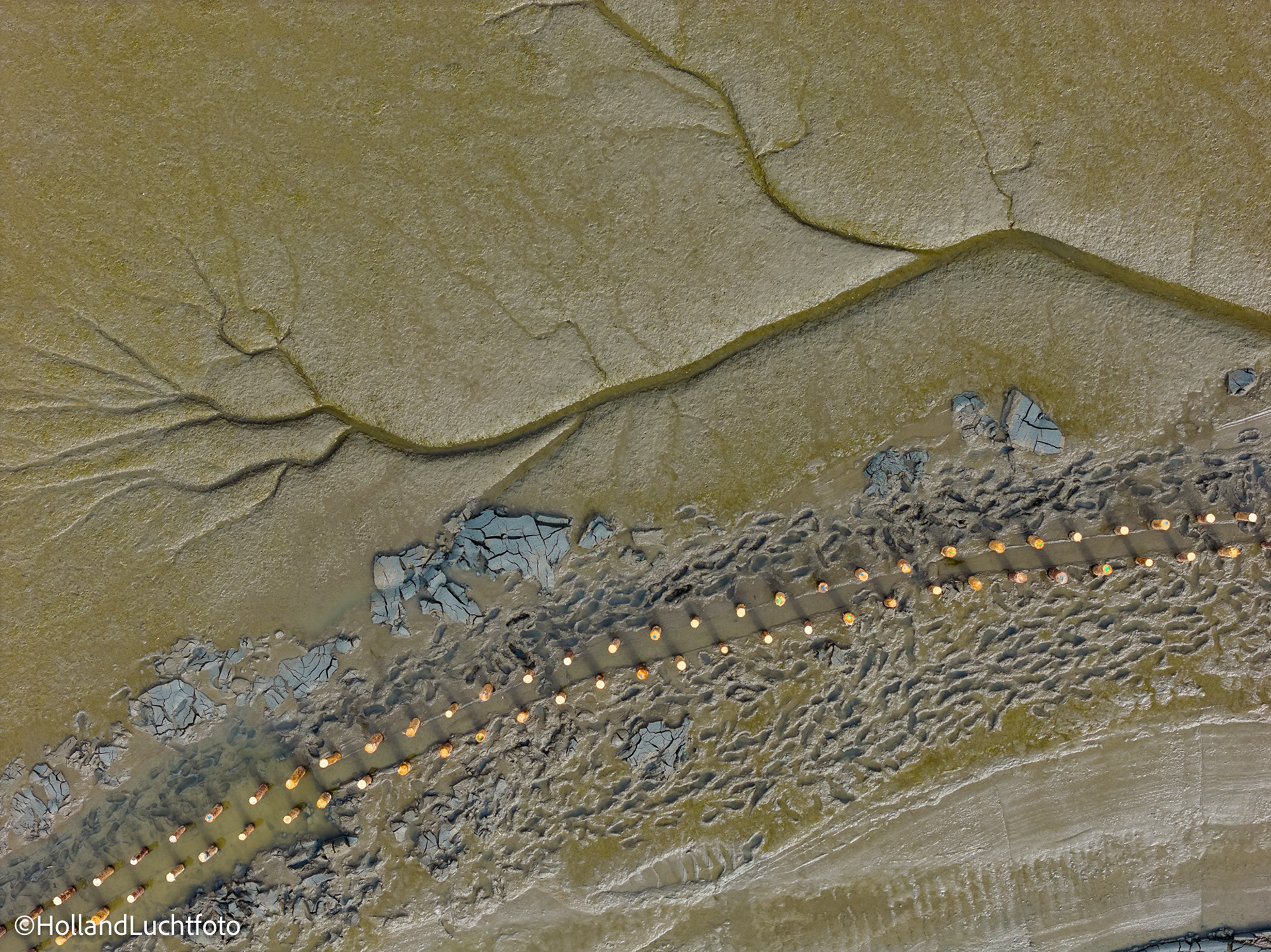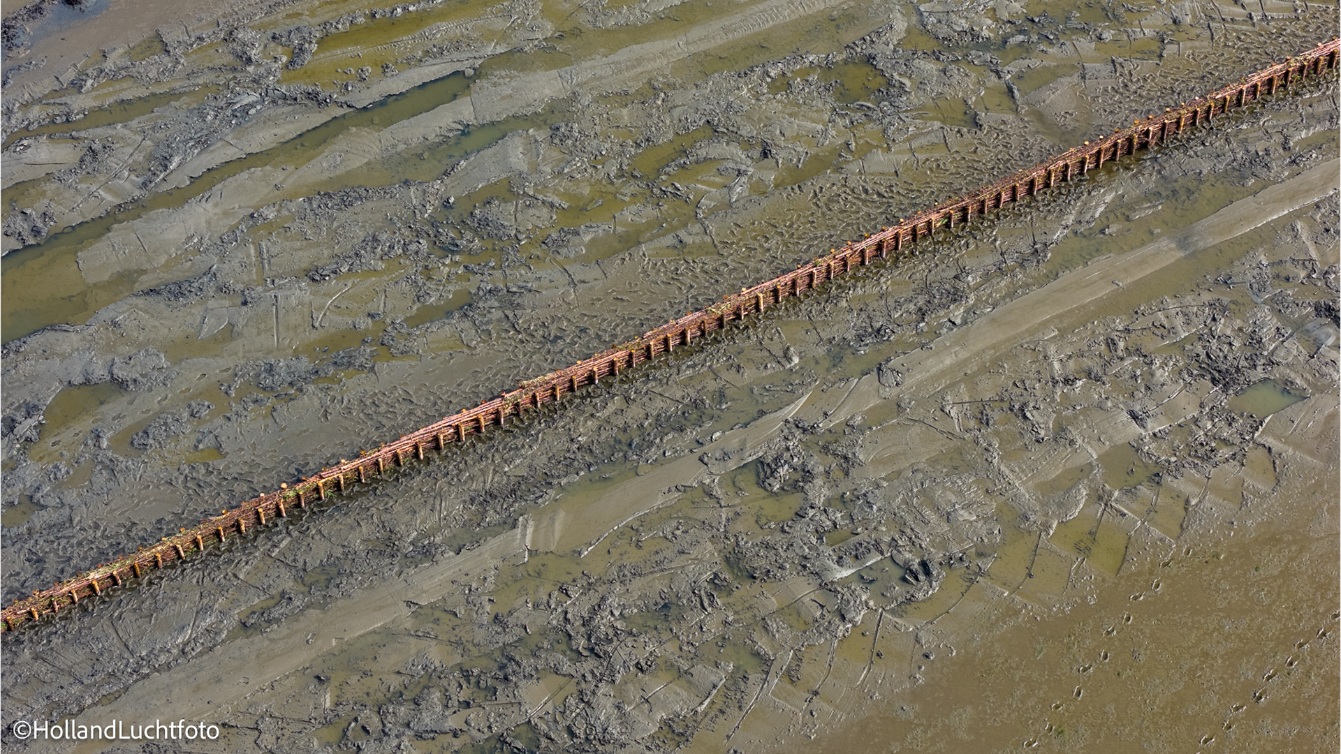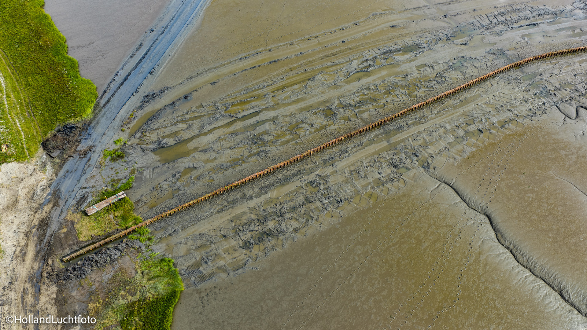 Op onze beelden is goed te zien hoe aannemer Van Aalsburg de rijshouten dammen in het gebied aanbrengt. Wat dit project visueel zo interessant maakt, is de vorm: de dammen worden niet in rechte lijnen, maar in halve manen en organische vormen geplaatst. Deze structuren zorgen voor de nodige luwte, waardoor het slib kan bezinken en de bodem langzaam ophoogt.